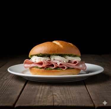 Mortadella, robiola e pesto