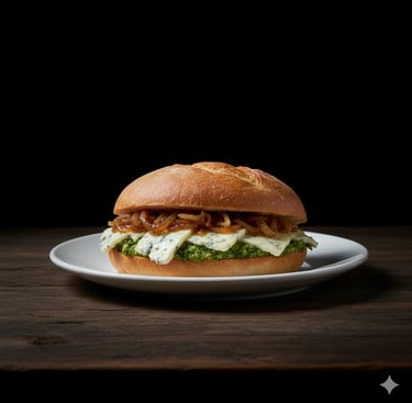 Gorgonzola, pestom (impasto fresco del salame) cipolle caramllate