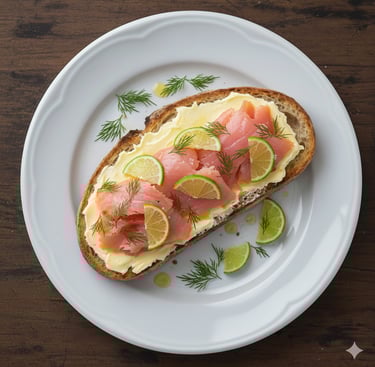 Trota affumicata, burro salato, lime